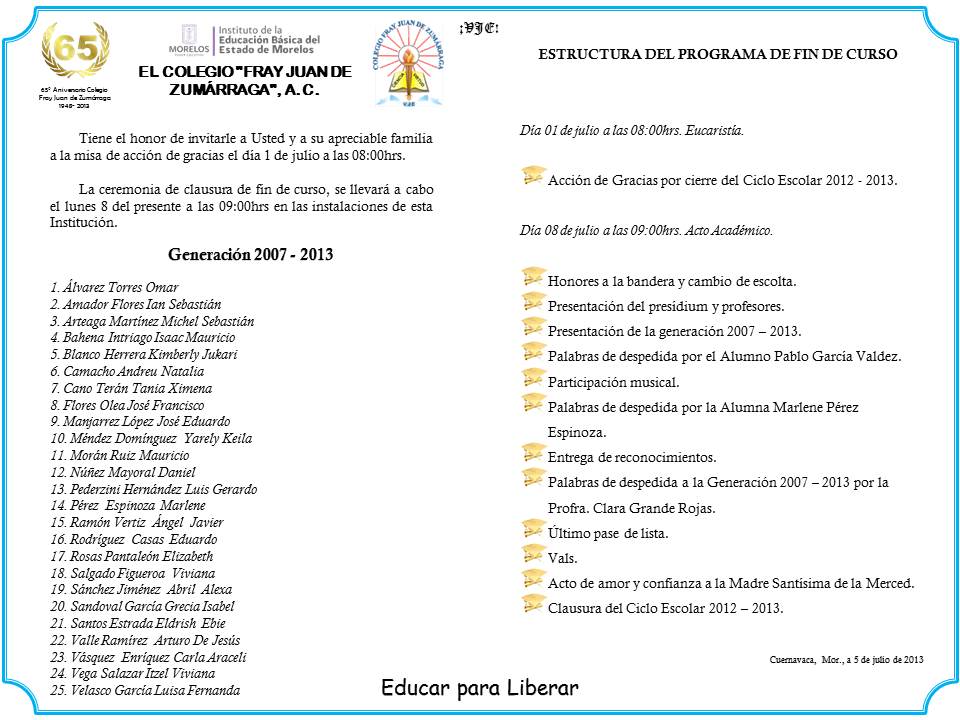Les compartimos este excelente programa editable para la ceremonia de clausura escolar se aproxima el fin de un ciclo escolar mas y para ellos les compartimos este material para estar preparados y poder llevar a cabo de manera correcta los preparativos para ese dia tan especial de nuestros alumnos tambien pueden encontrar en la pagina. Tenemos para ti material descargable para que disfrutes con tu familia y amigos. Utilizamos cookies para asegurar que damos la mejor experiencia al usuario en nuestro sitio web. Si continua utilizando este sitio asumiremos que esta de acuerdo.