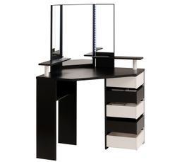 Meuble coiffeuse but. Une coiffeuse est un meuble qui depuis quelques annees semble avoir retrouver une place dans votre maison. Meuble feminin par excellence la coiffeuse fait partie dun imaginaire de contes et de princesses qui a hante les reves dune majorite de petites filles. Orne dun joli miroir orientable en forme de medaillon cette coiffeuse est ideale pour vous faire belle et vous maquiller. Elle dispose de deux petits tiroirs pour ranger vos accessoires de maquillage et dun grand tiroir central pour tous vos bijoux.