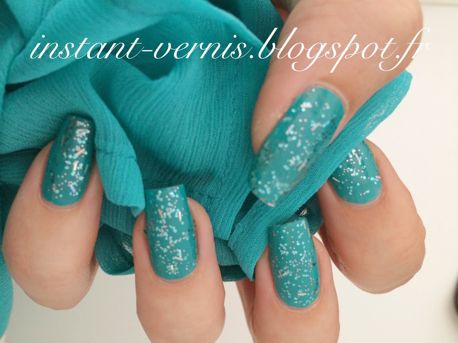 Instant Vernis Nail Art Bleu Paillete