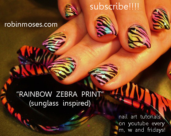 Another Zebra Stripe Rainbow Nail Art Design With Matching